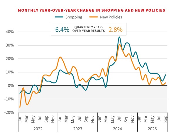 ATLANTA — Shopping for auto insurance remained in high gear through the third quarter of 2025, according to the latest U.S. Insurance Demand Meter from LexisNexis® Risk Solutions. The quarterly year-over-year shopping growth rate registered as “Hot” at 6.4% for Q3, while new policy growth came in “Warm” at 2.8%.