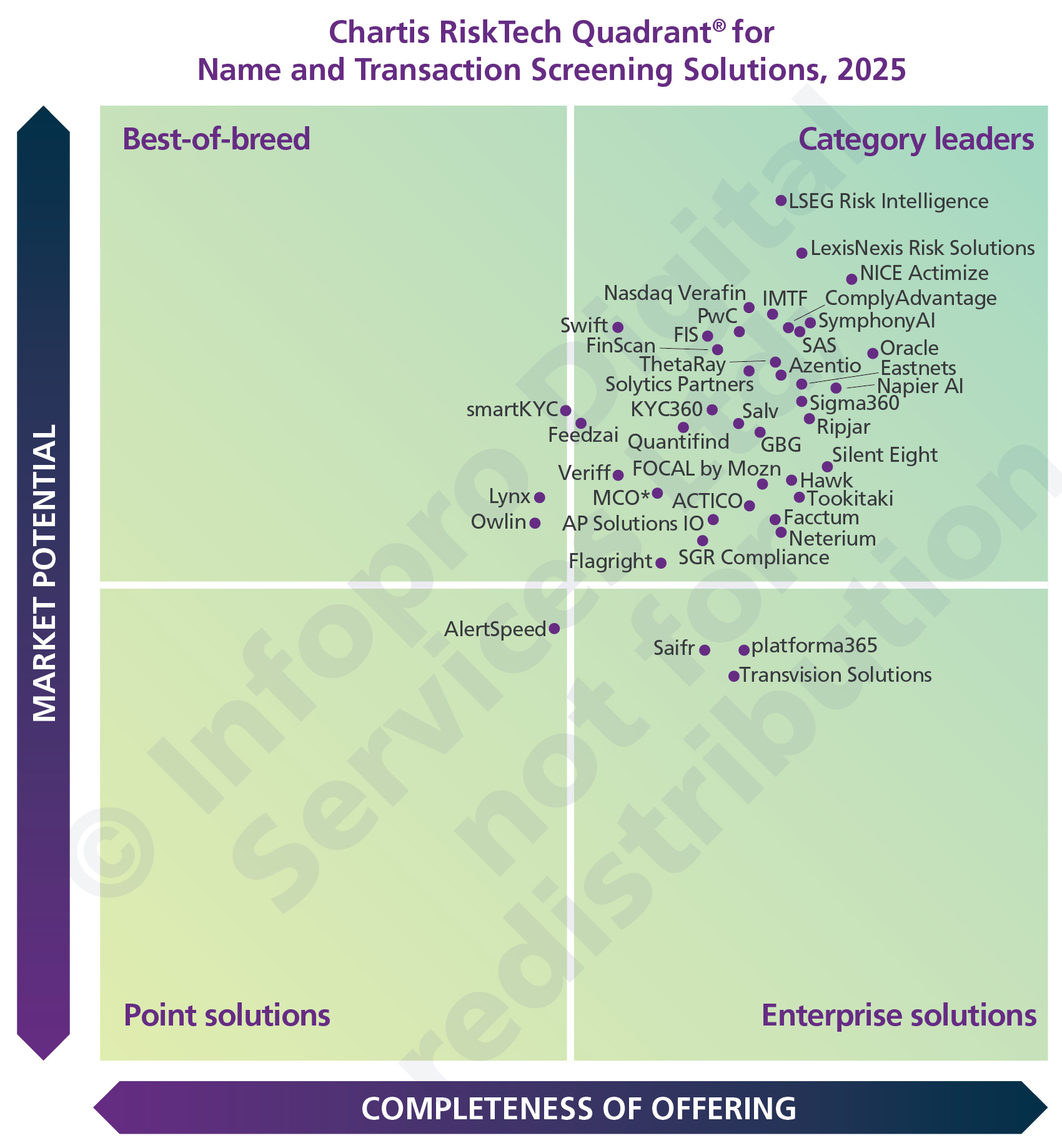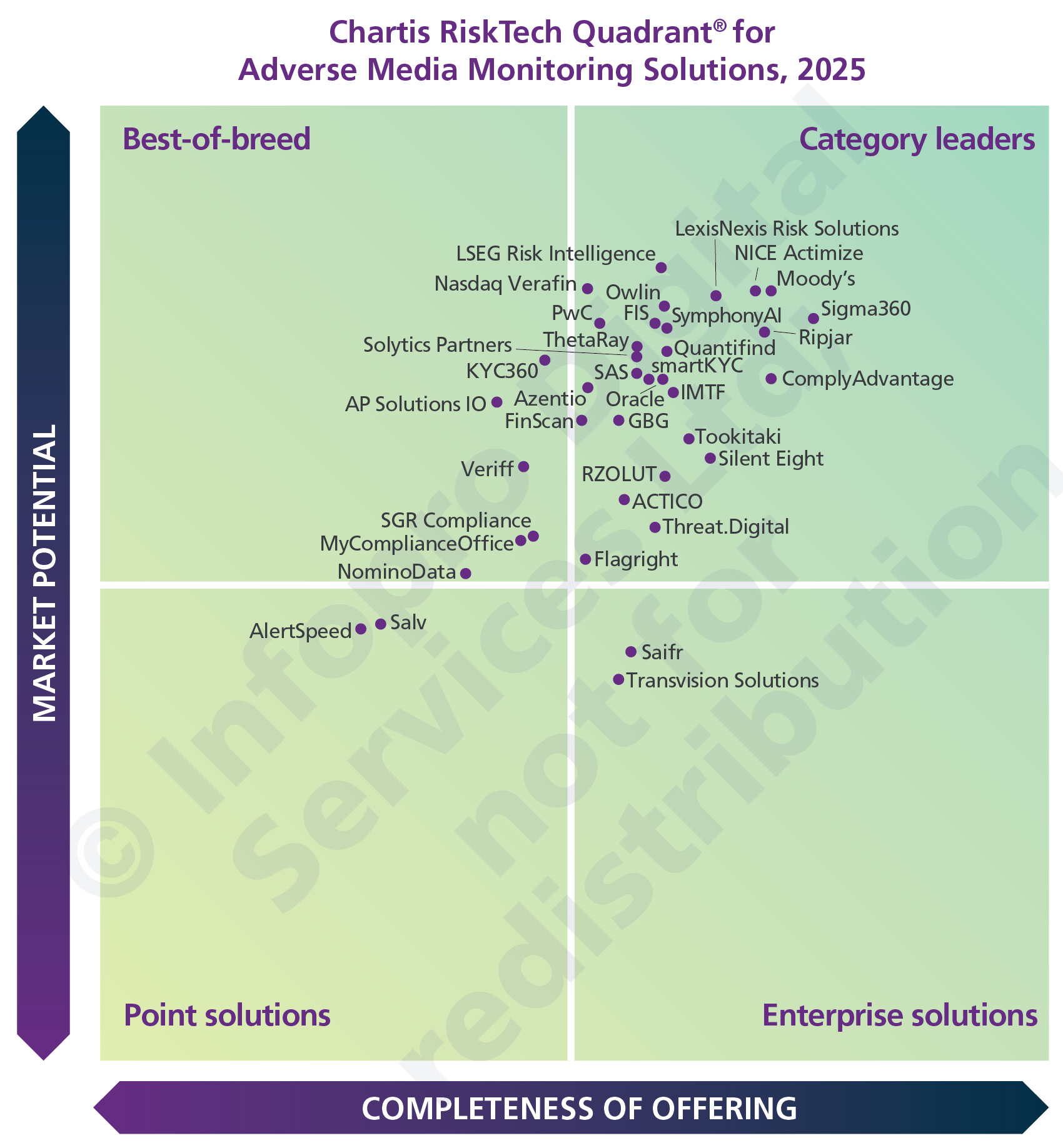 Vendors are assessed on two key dimensions: completeness of offering and market potential. According to Chartis, category leaders demonstrate strong capabilities across the segment, with ‘clear execution of strategy and innovation’.