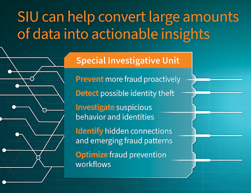 SIU offers next-level support in preventing fraud and identity theft. It has a full complement of advanced investigative tools and technology at its disposal, enabling it to cut across information silos and reduce system-wide vulnerabilities.