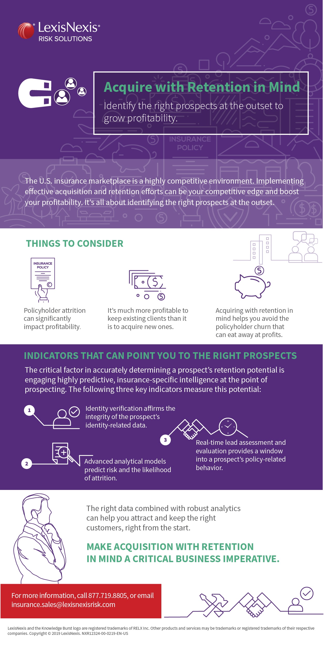 The U.S. insurance marketplace is a highly competitive environment. Implementing effective acquisition and retention efforts can be your competitive edge and boost your profitability. It’s all about identifying the right prospects at the outset.