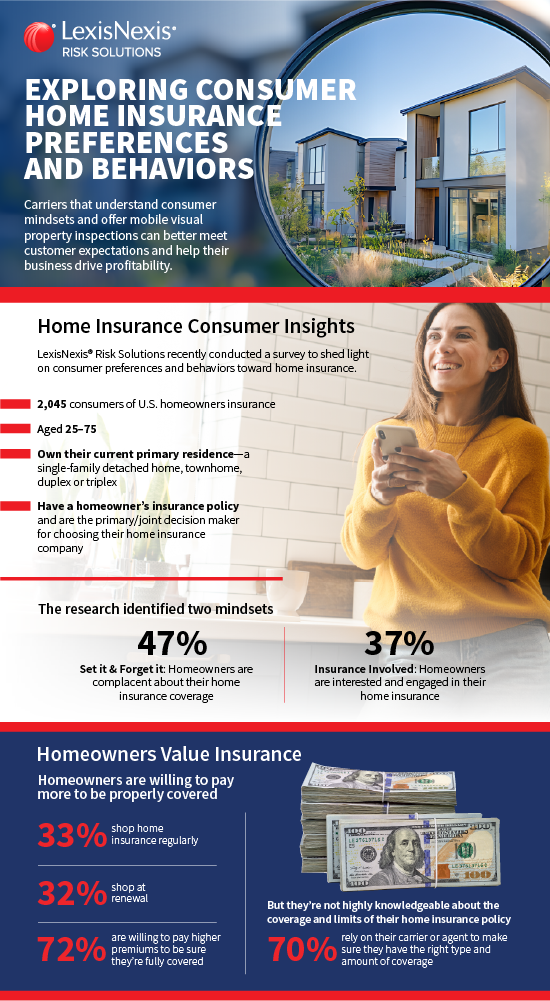This infographic reveals key insights from a recent LexisNexis® Risk Solutions survey of U.S. homeowners, highlighting evolving preferences, behaviors, and expectations in home insurance. Learn how mobile visual inspections and AI-driven tools like LexisNexis® Flyreel® are transforming the customer experience—boosting satisfaction, uncovering hidden risks, and helping carriers drive smarter underwriting decisions. Whether you're looking to try and retain loyal customers or help improve profitability, these findings offer a clear path forward.