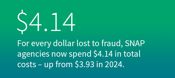 Fraud Volume and Costs Have Risen Sharply – The average monthly rate of applications and post-issuance cases determined as fraud has doubled since 2024. Digital channels are creating new vulnerabilities while sophisticated criminal networks exploit electronic benefit transfer (EBT) systems through account takeovers, synthetic identities, and dual participation schemes.